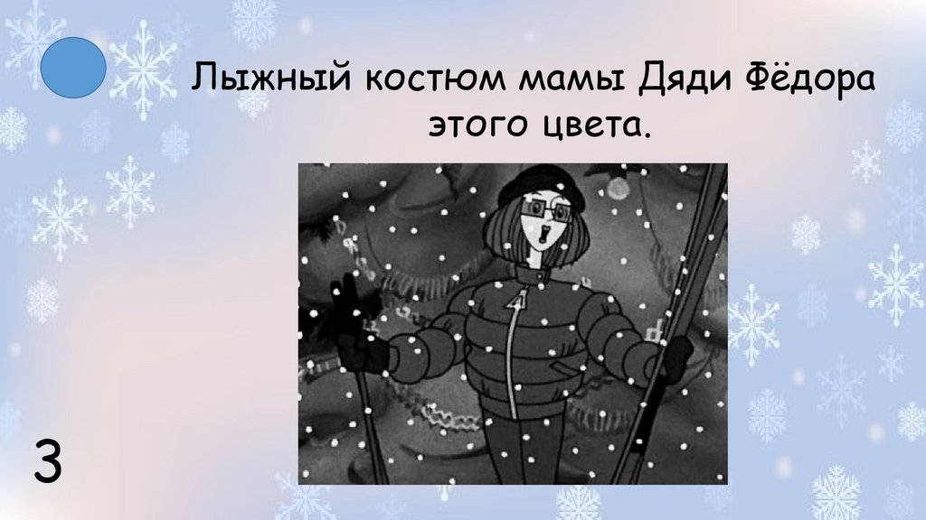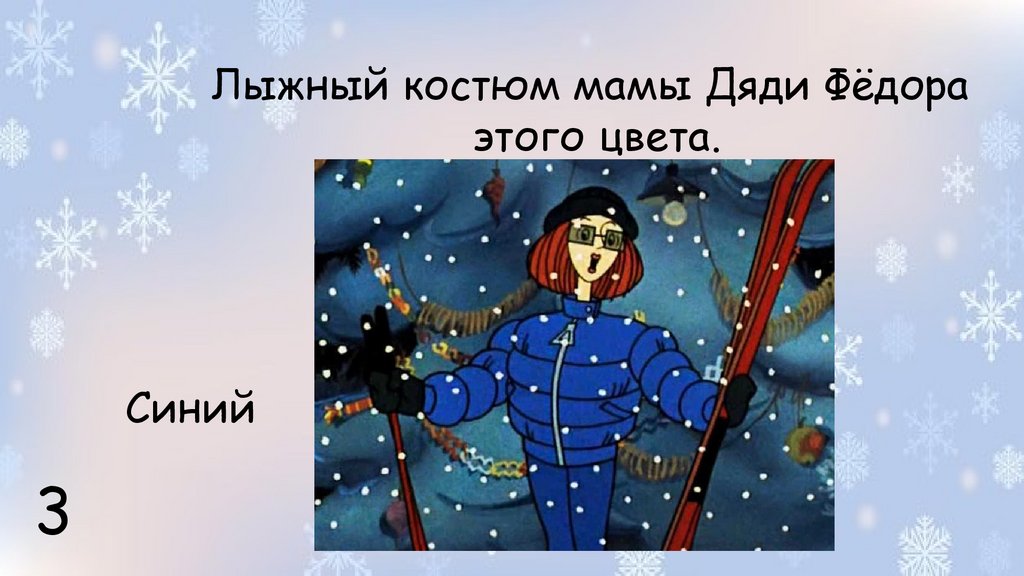 Лыжный костюм мамы Дяди Фёдораэтого цвета.