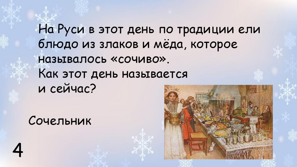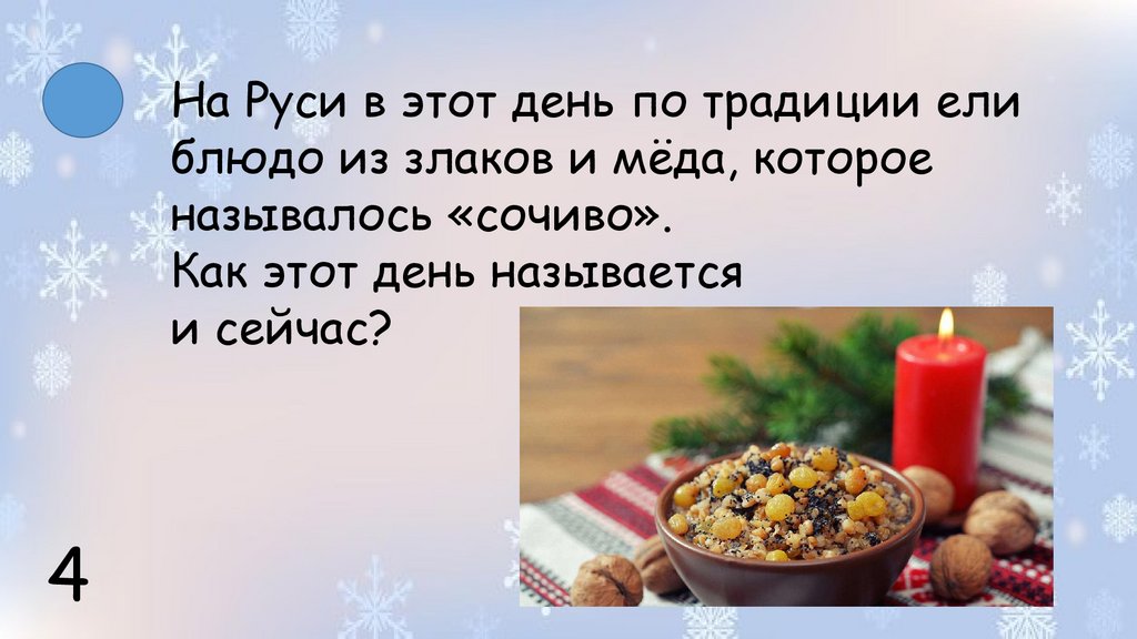 На Руси в этот день по традиции елиблюдо из злаков и мёда, которое
