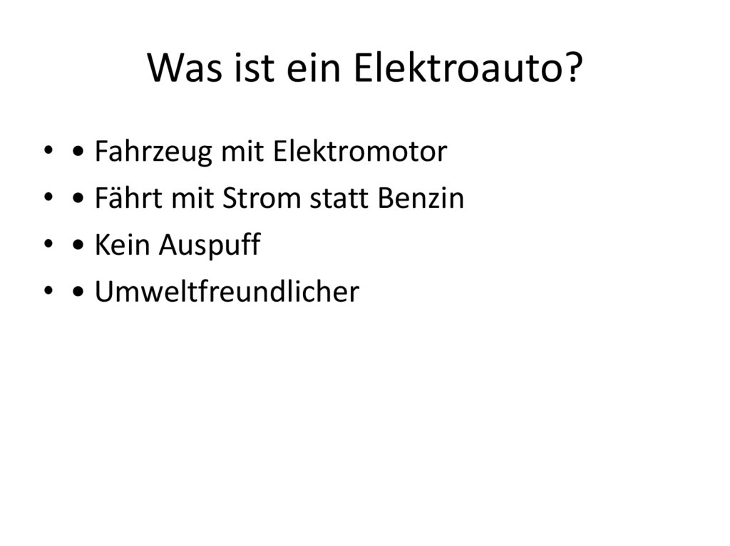 Was ist ein Elektroauto?• • Fahrzeug mit Elektromotor
