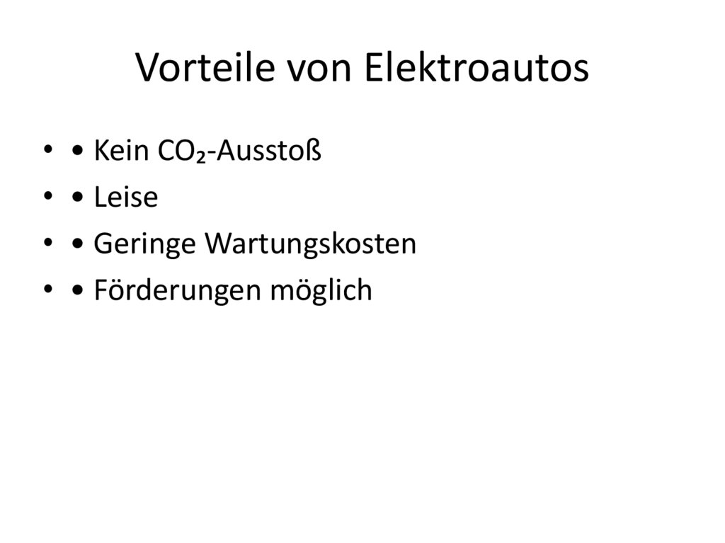 Vorteile von Elektroautos• • Kein CO₂-Ausstoß