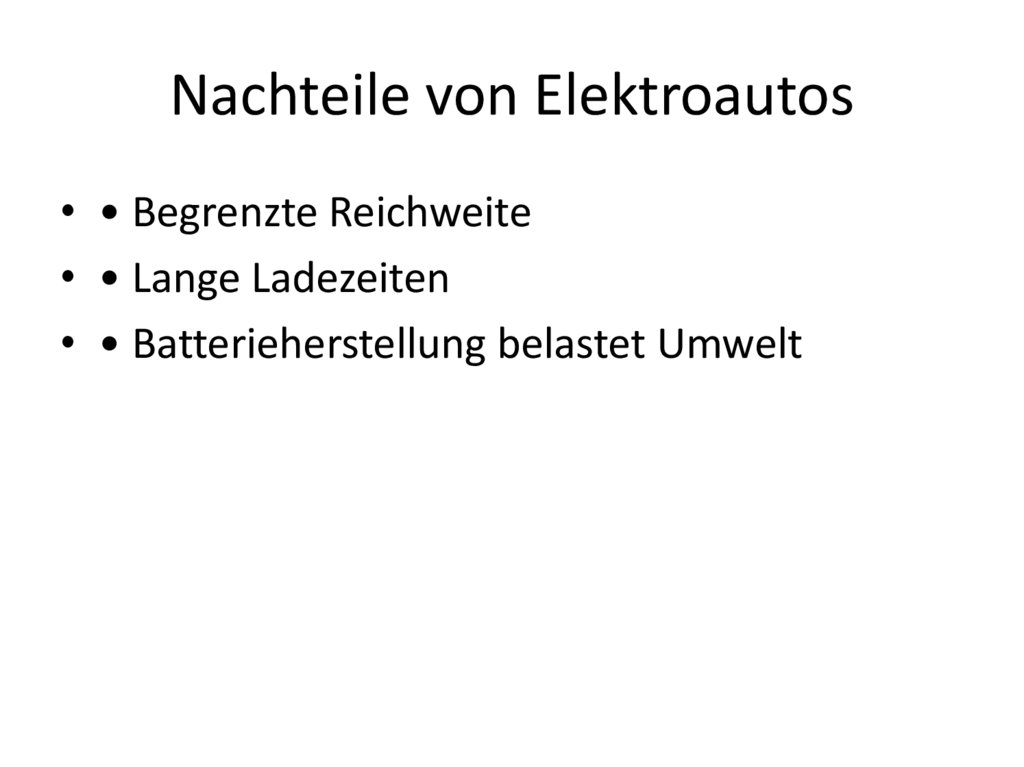 Nachteile von Elektroautos• • Begrenzte Reichweite