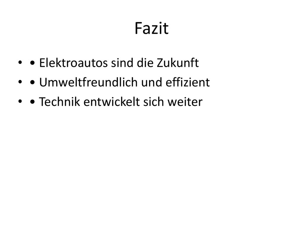 Fazit• • Elektroautos sind die Zukunft