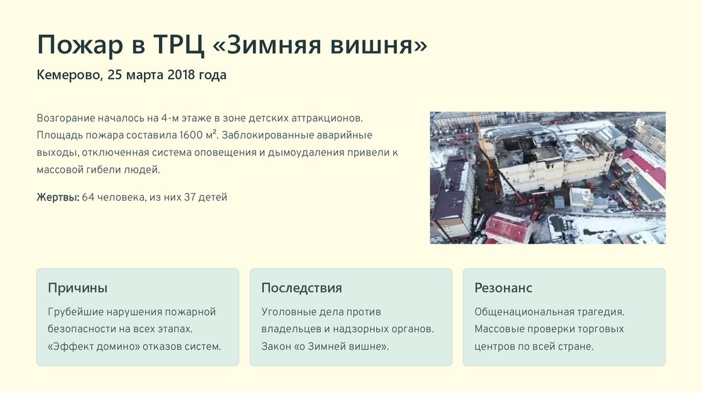 Анализ трех трагедий: Пожар в ТРЦ «Зимняя вишня» (2018), Жесткая