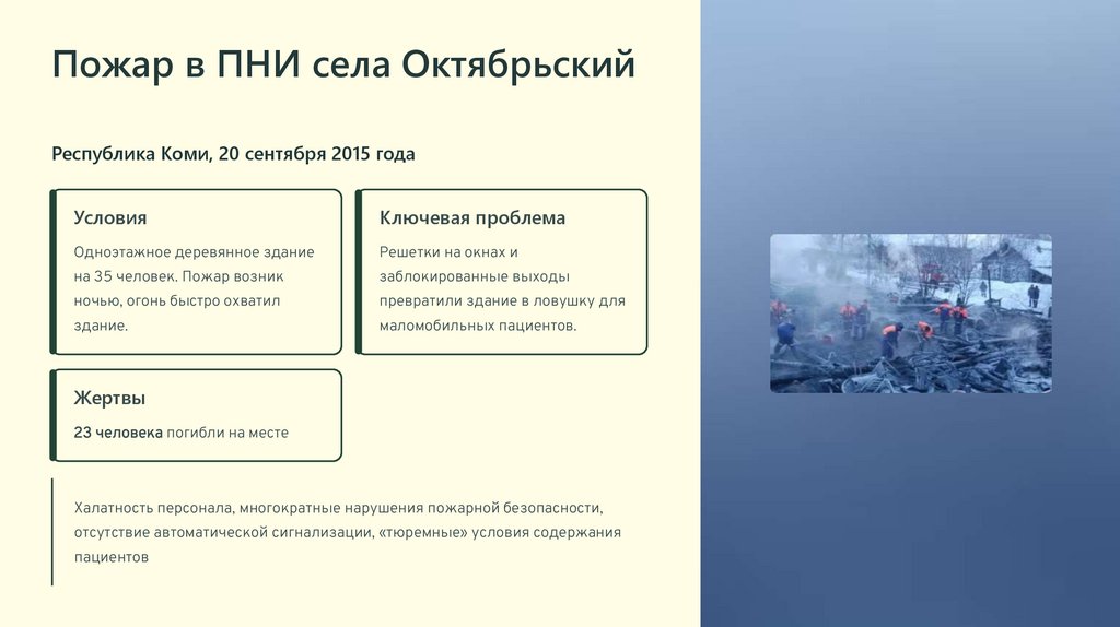 Пожар в ПНИ села ОктябрьскийРеспублика Коми, 20 сентября 2015 года