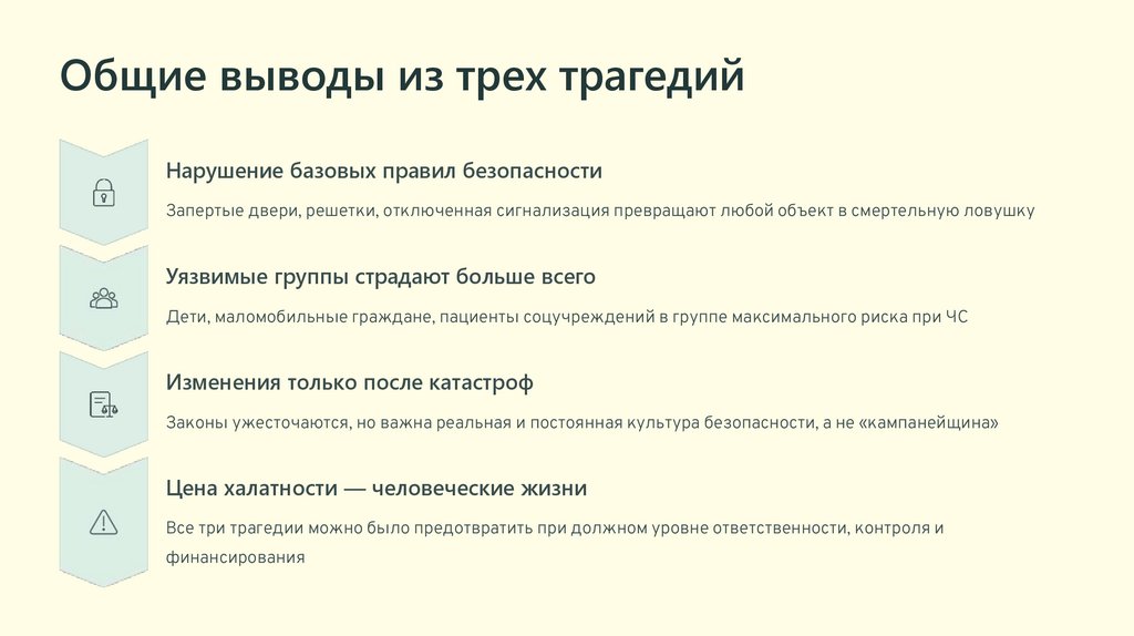 Все три трагедии можно было предотвратить при должном уровне ответственности, контроля и