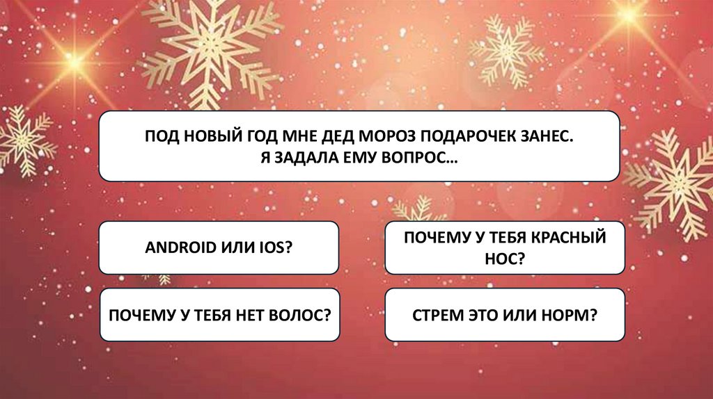 ПОД НОВЫЙ ГОД МНЕ ДЕД МОРОЗ ПОДАРОЧЕК ЗАНЕС.Я ЗАДАЛА ЕМУ ВОПРОС…