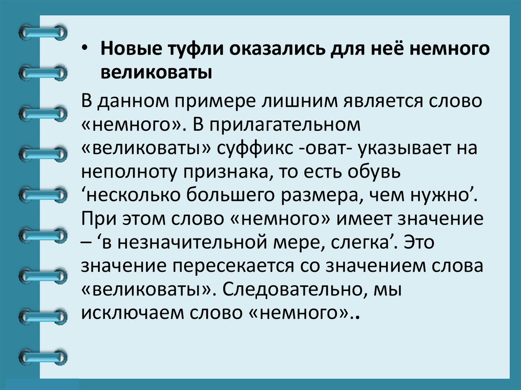 «великоваты» суффикс -оват- указывает на