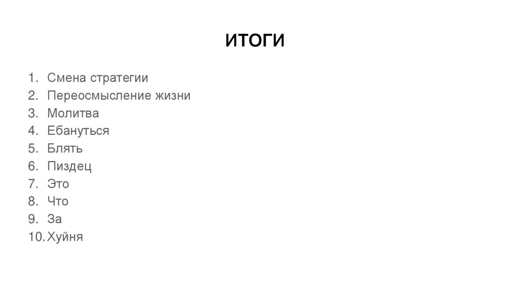 ИТОГИ1. Смена стратегии