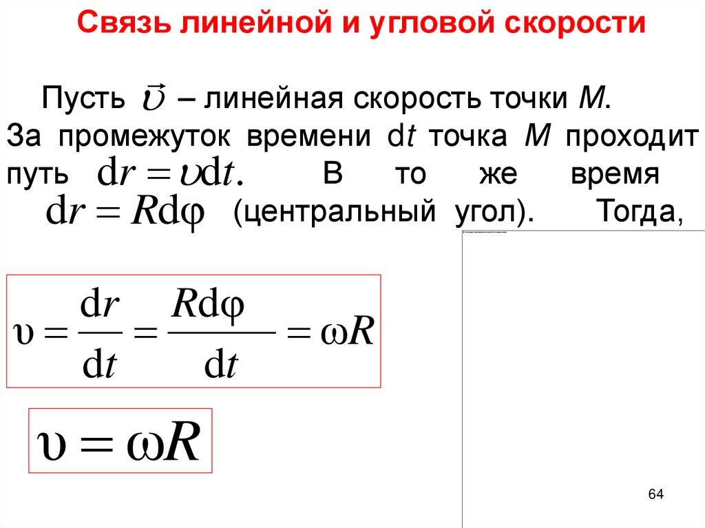 скоростейυ ωR - Связь линейной и угловой
