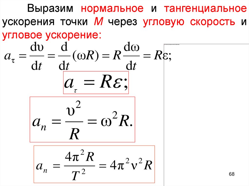 Выразим нормальное и тангенциальноеускорения точки М через угловую скорость и