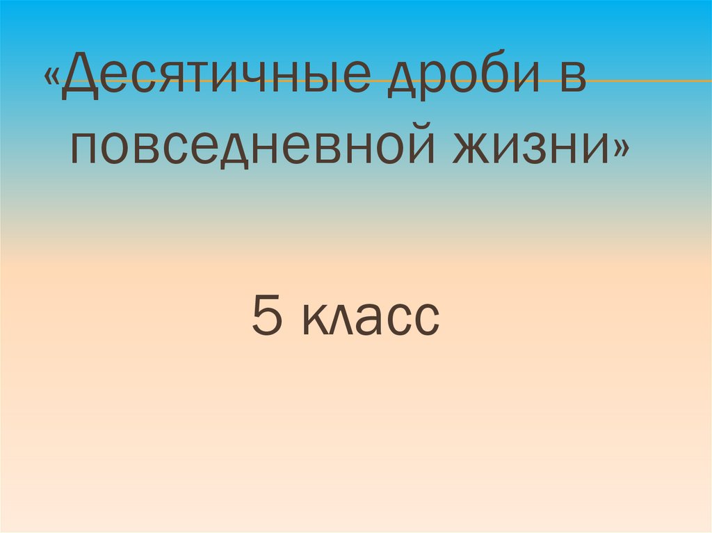 «Десятичные дроби вповседневной жизни»