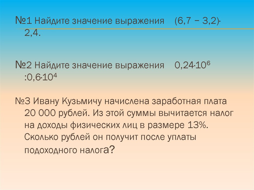№2 Найдите значение выражения 0,24·106