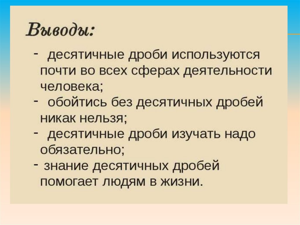 изучения десятичных дробей.