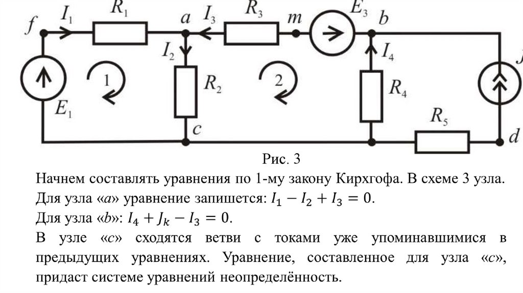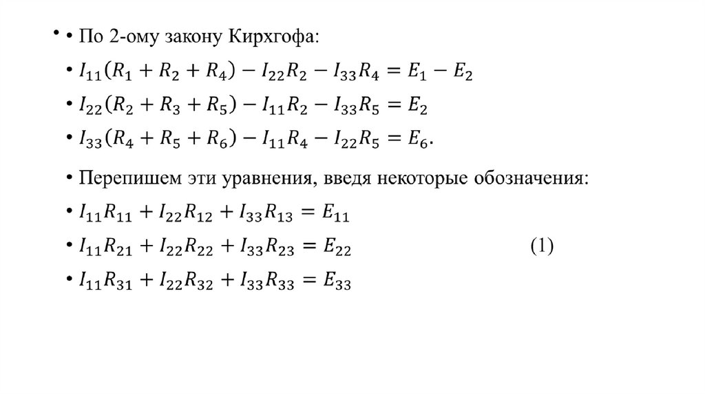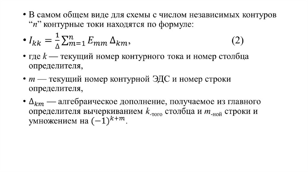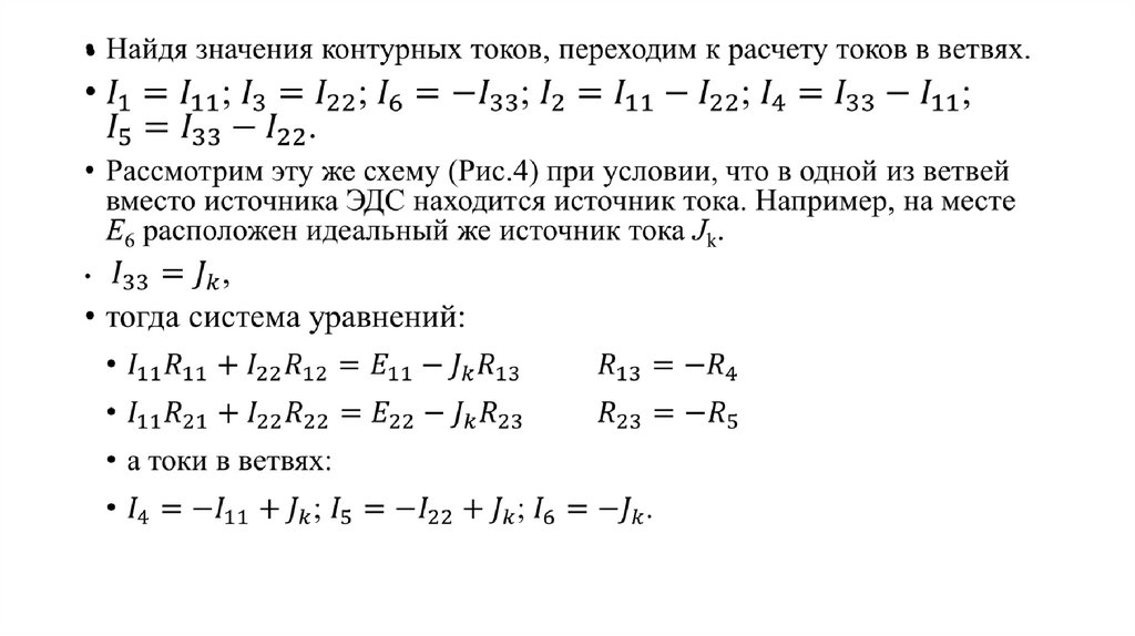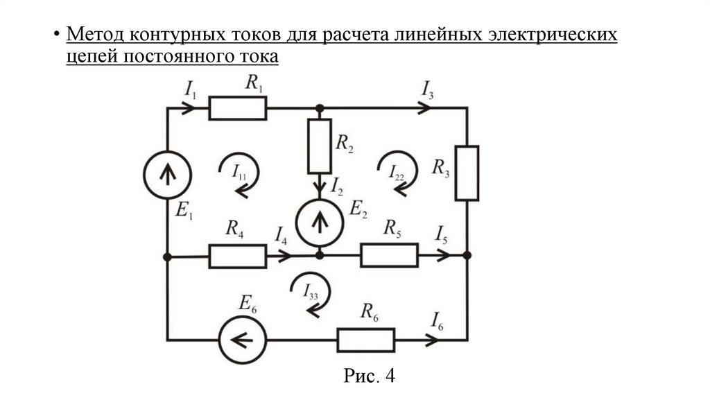 • Метод контурных токов для расчета линейных электрических