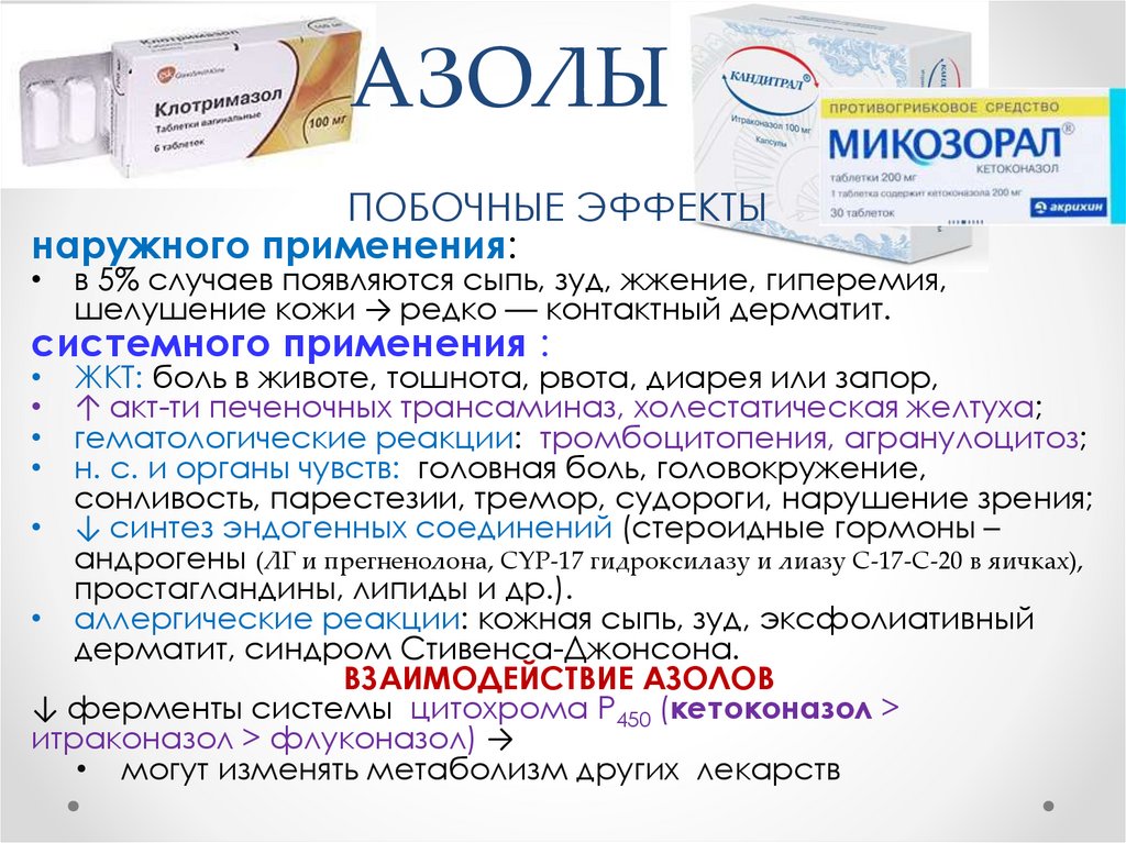 • имидазолы, J02AВ02: кетоконазол («низорал», о +местно),