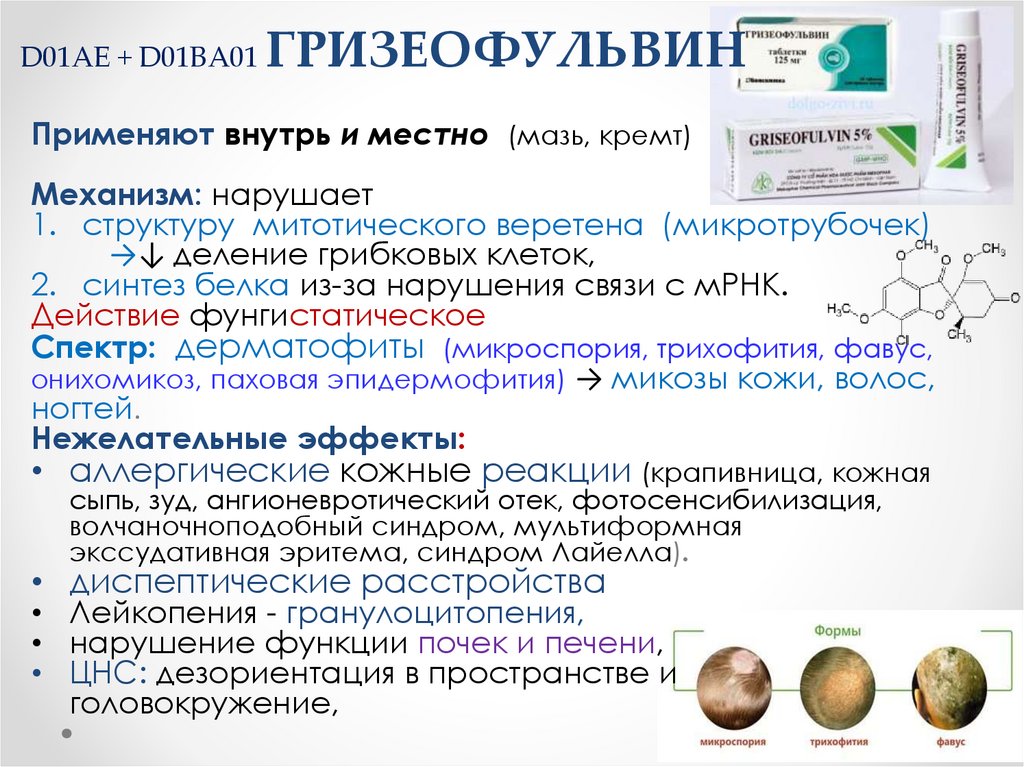 D01AB: гризеофульвин (Penicillium)