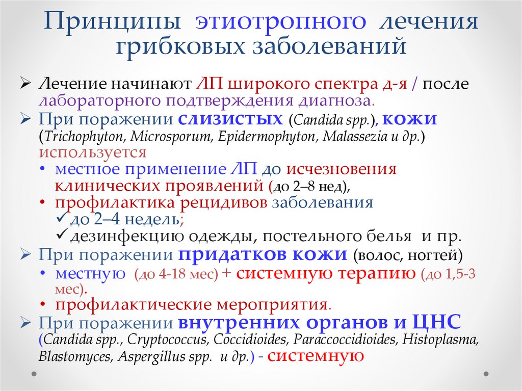 Принципы этиотропного лечениягрибковых заболеваний
