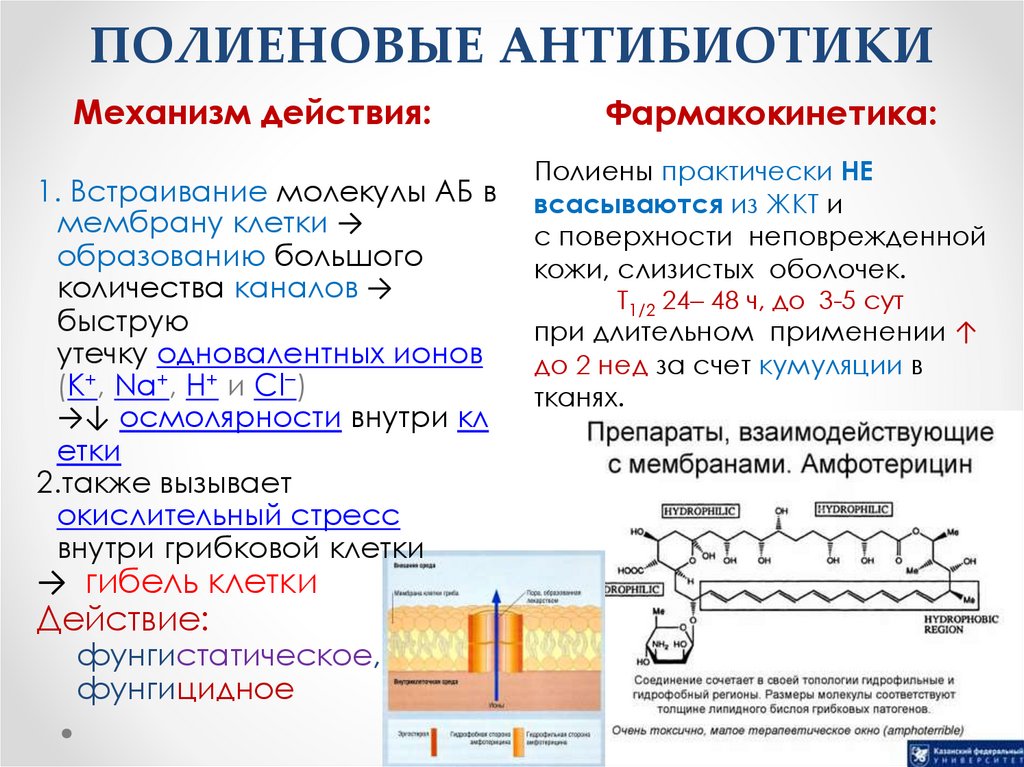 ПОЛИЕНОВЫЕ АНТИБИОТИКИМеханизм действия: