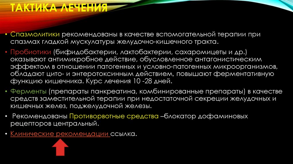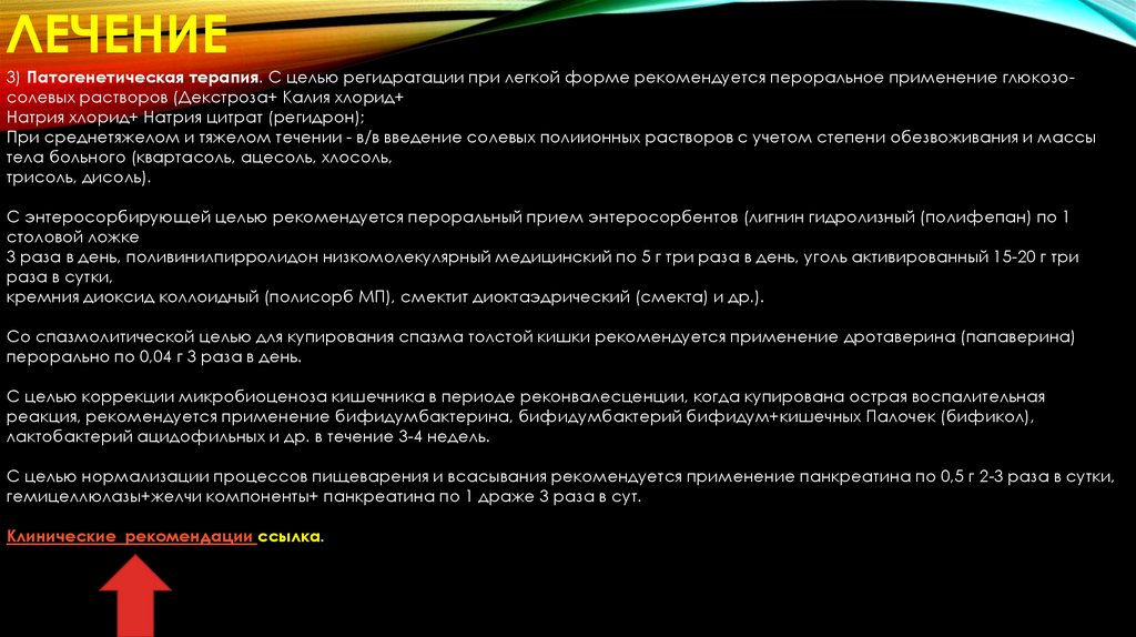 Лечение• Выбор метода лечения кампилобактериозом зависит от клинической