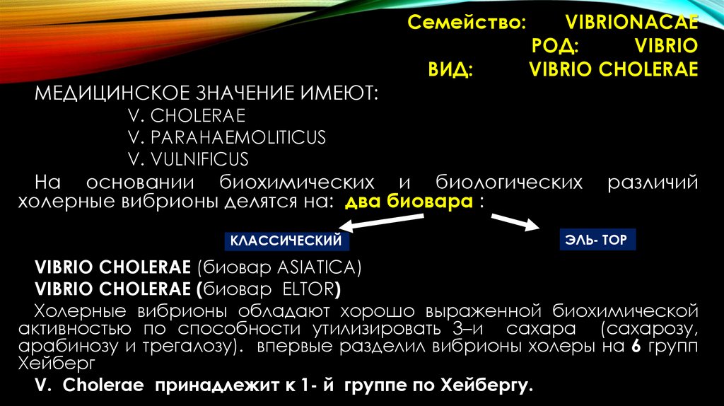 КЛАССИФИКАЦИЯ• Семейство Spirillaceae ;