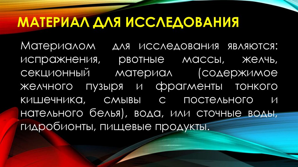 • В мазках из фекалий определяют типичные по форме микробы в