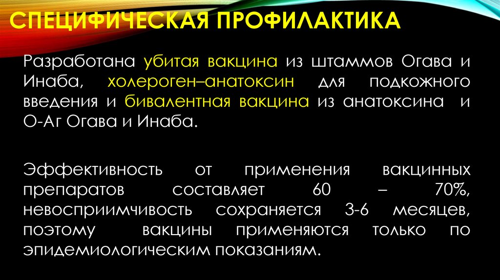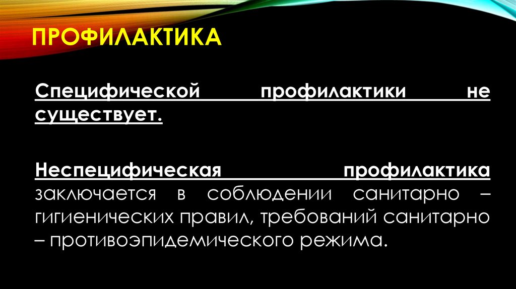 • Специфическая профилактика не разработана;