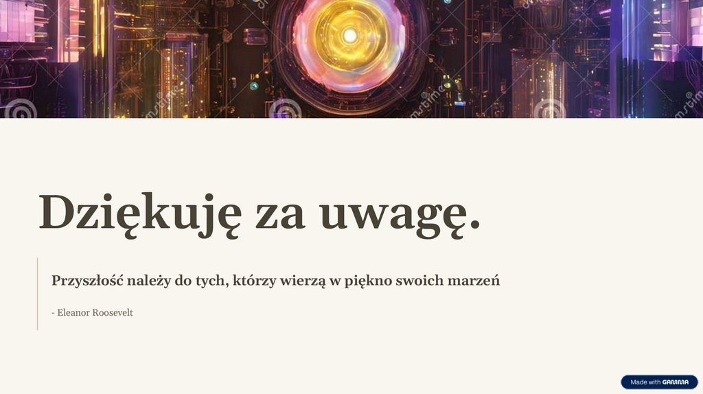 Dziękuję za uwagę.Przyszłość należy do tych, którzy wierzą w piękno swoich marzeń