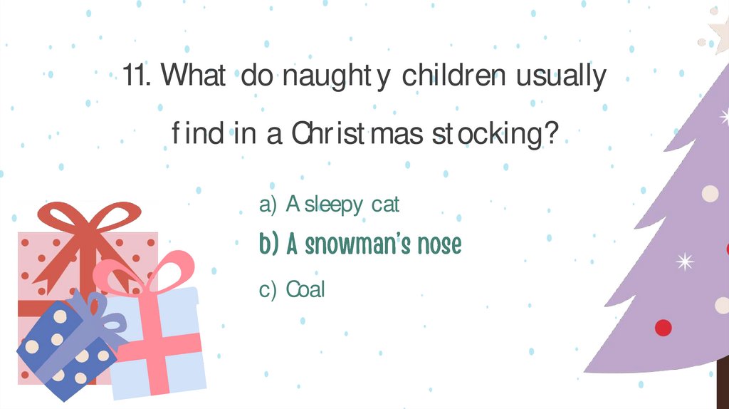 11. What do naughty children usuallyfind in a Christmas stocking?