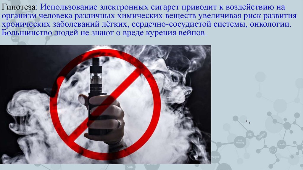 Гипотеза: Использование электронных сигарет приводит к воздействию наорганизм человека различных химических веществ увеличивая риск развития