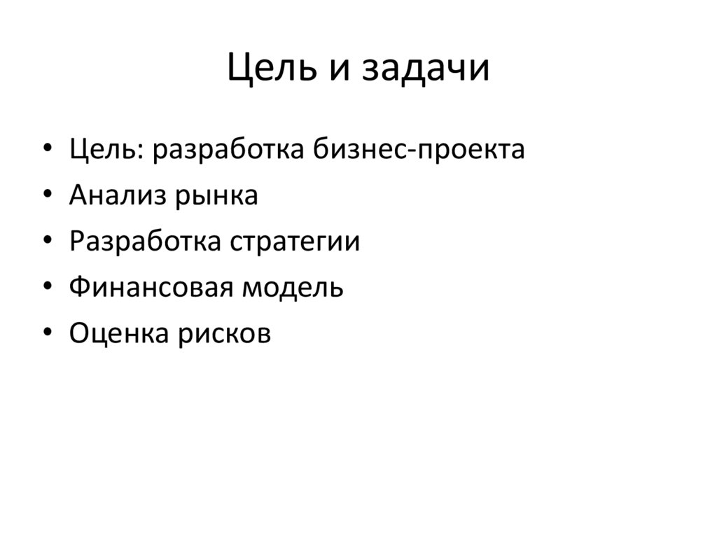 Цель и задачи• Цель: разработка бизнес-проекта
