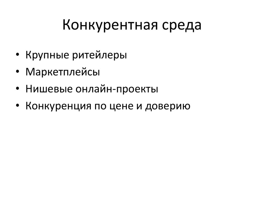 • Конкуренция по цене и доверию