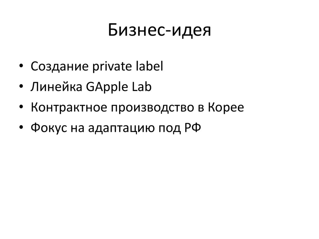 Бизнес-идея• Создание private label