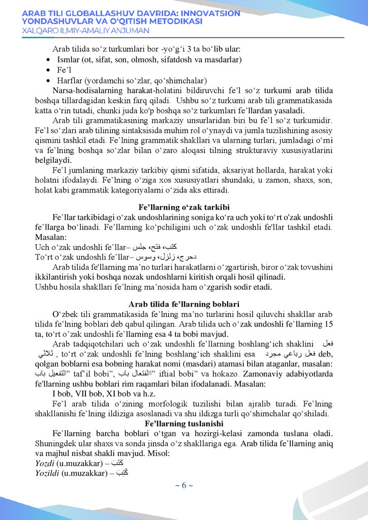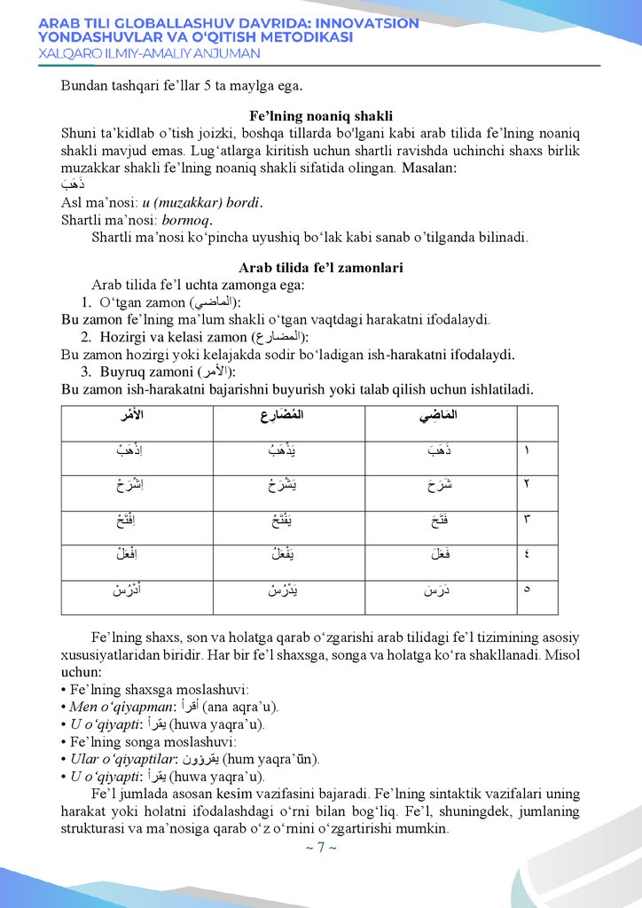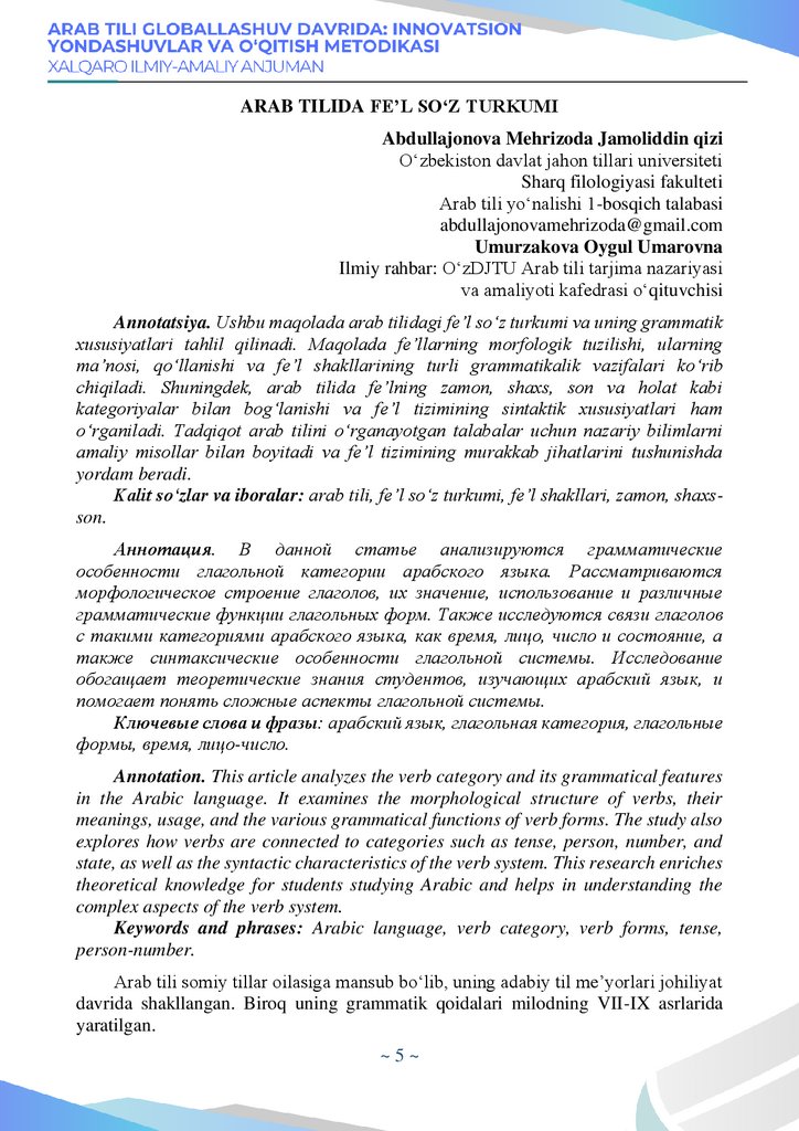 Annotatsiya. Ushbu maqolada arab tilidagi fe’l so‘z turkumi va uning grammatik