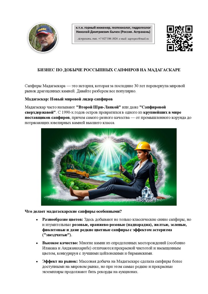 БИЗНЕС ПО ДОБЫЧЕ РОССЫПНЫХ САПФИРОВ НА МАДАГАСКАРЕ