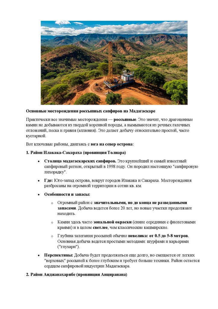 цветов. Его месторождения, особенно Илакака, еще долго будут снабжать рынок, но будущее