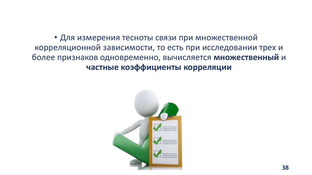 • Для измерения тесноты связи при множественнойкорреляционной зависимости, то есть при исследовании трех и