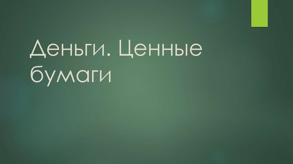 1. Деньги. Ценные бумаги