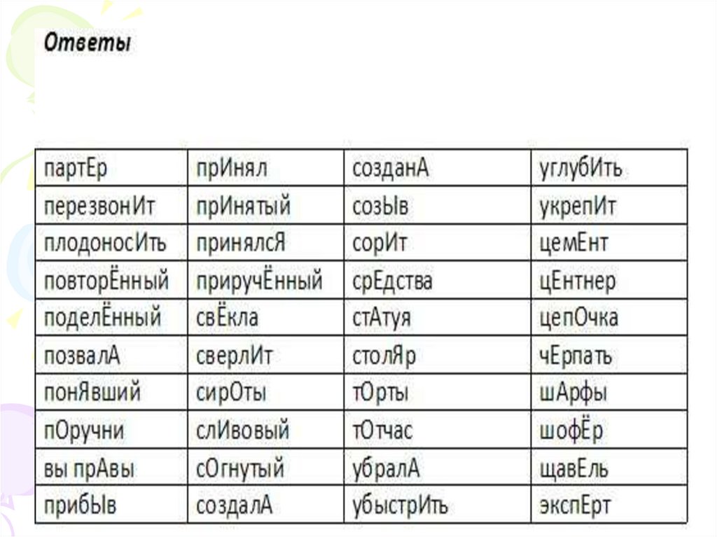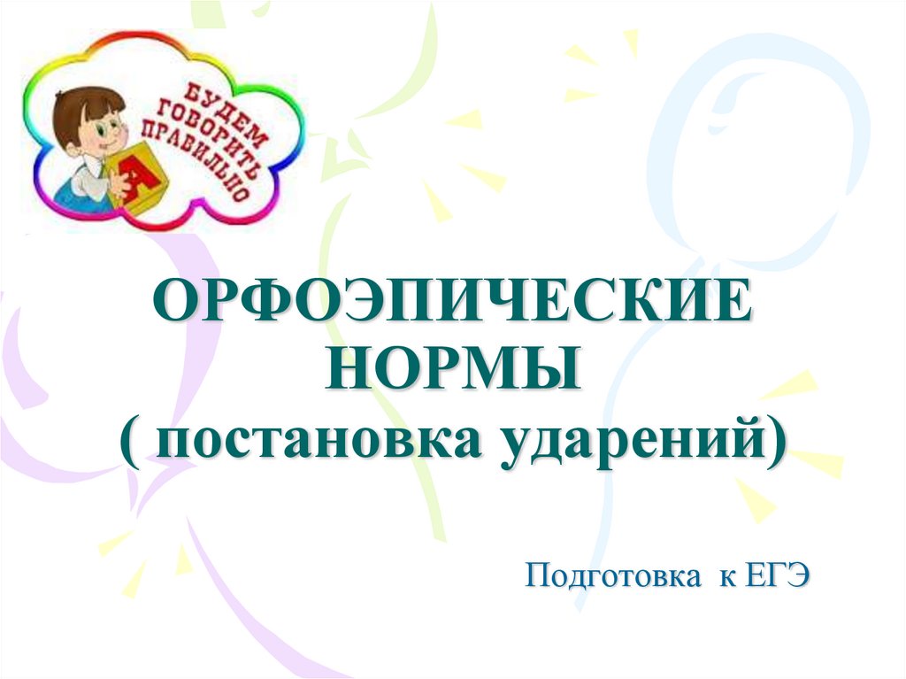 1. ОРФОЭПИЧЕСКИЕ НОРМЫ ( постановка ударений)