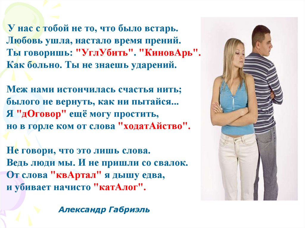 У нас с тобой не то, что было встарь.Любовь ушла, настало время прений.