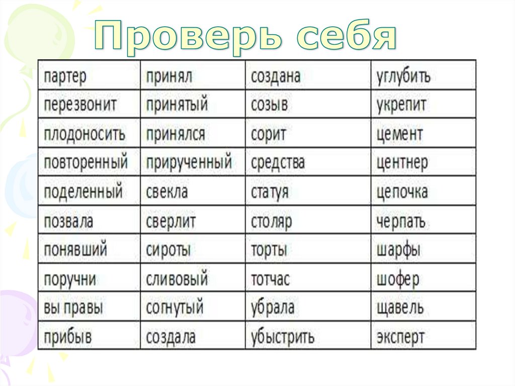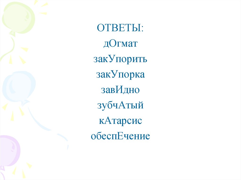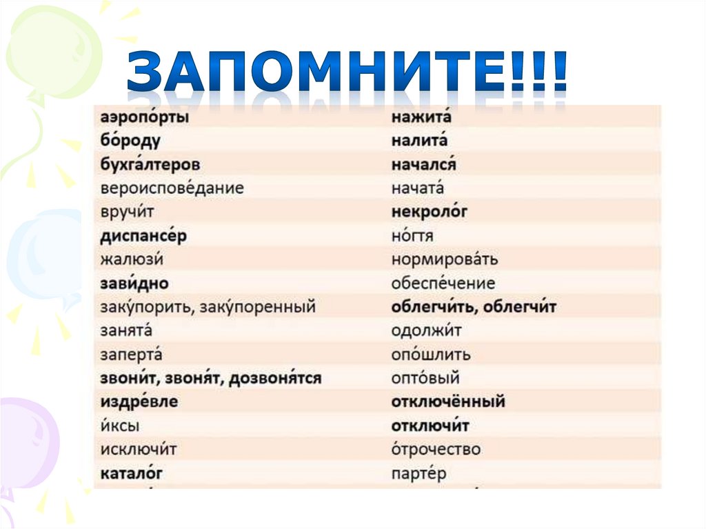 1. Беру 7 слов с неоднозначным для меняударением. Например: