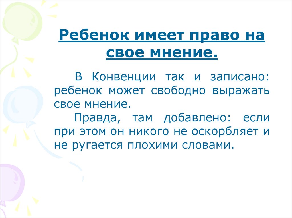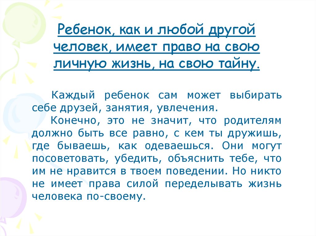 Ребенок, как и любой другойчеловек, имеет право на свою