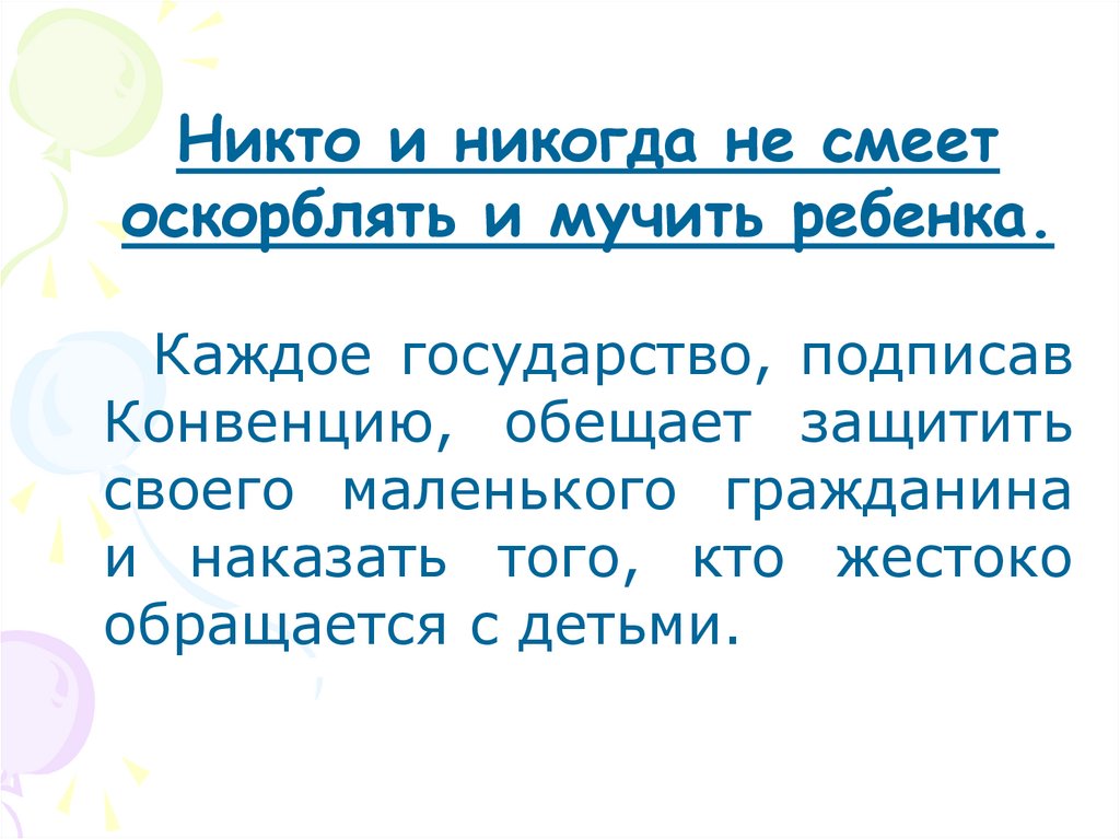 Никто и никогда не смеетоскорблять и мучить ребенка.