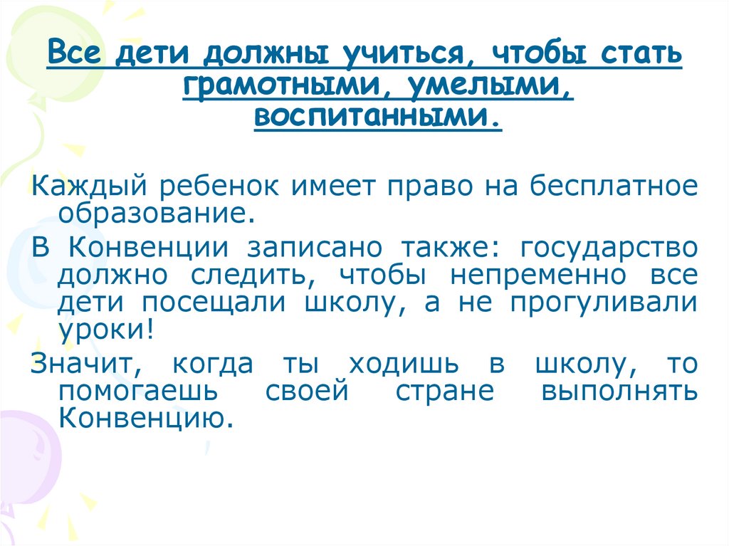 Все дети должны учиться, чтобы статьграмотными, умелыми,