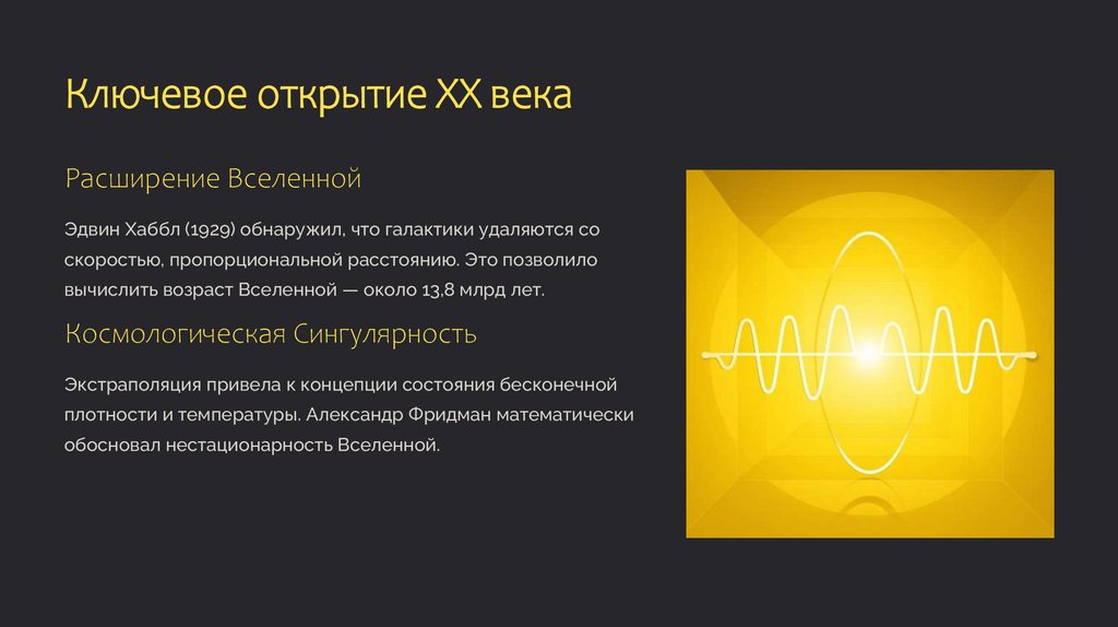 Вселенная возникла 13,8 млрд лет назад из сингулярности.