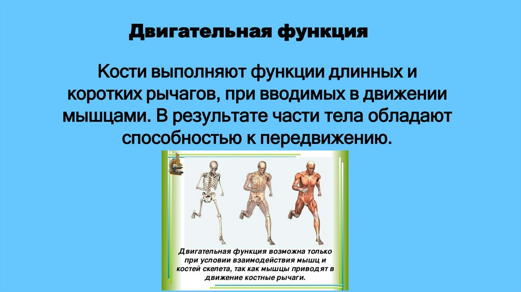 Имеет механическое значение.Кости поддерживают прикрепляющиеся к ним мягкие ткани