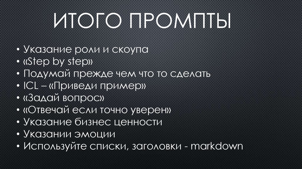ИТОГО ПРОМПТЫ• Указание роли и скоупа