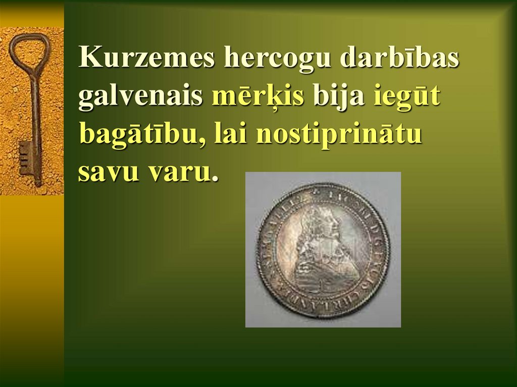 Kurzemes hercogu darbībasgalvenais mērķis bija iegūt