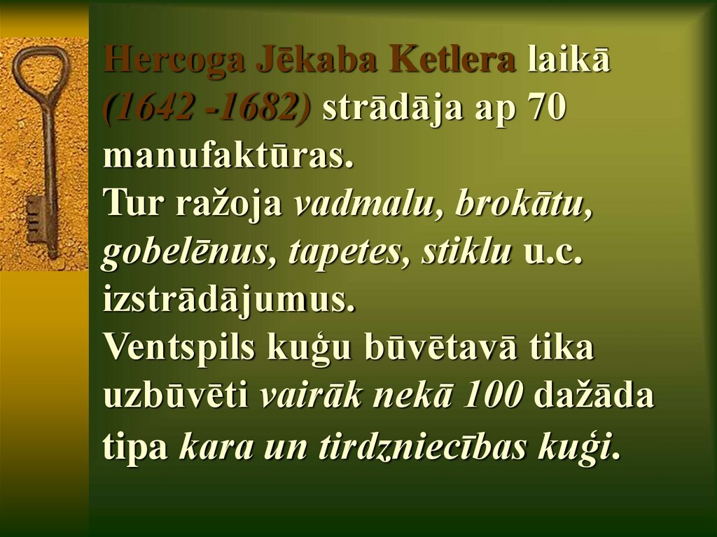 Hercoga Jēkaba Ketlera laikā(1642 -1682) strādāja ap 70