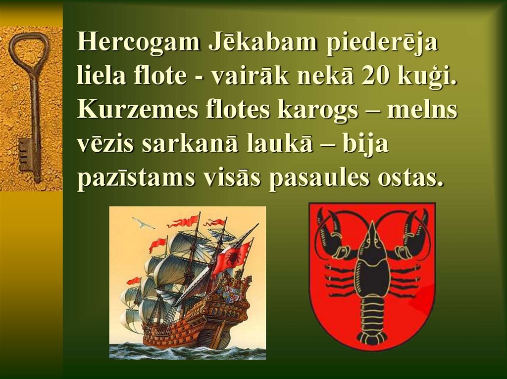 Hercogam Jēkabam piederējaliela flote - vairāk nekā 20 kuģi.