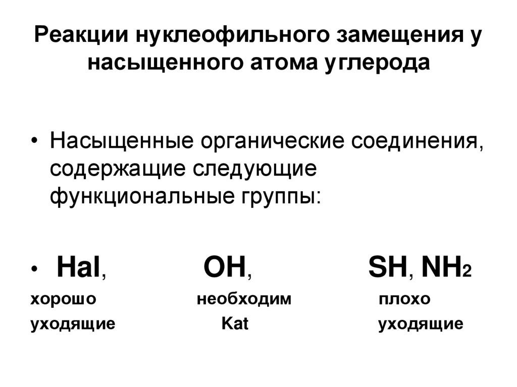 1. Реакции нуклеофильного замещения у насыщенного атома углерода